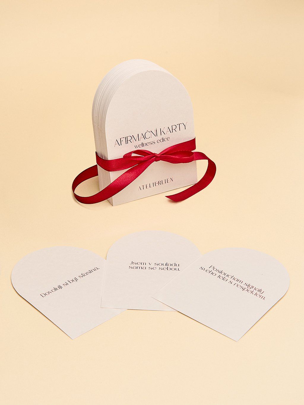 Karty jsou navrženy tak, aby se přirozeně staly součástí vašeho každodenního života. Jsou oříznuté do jemného obloukového tvaru a vytištěné na prémiovém barevném strukturovaném papíru vysoké gramáže, který podtrhuje jejich kvalitu a nadčasový vzhled.